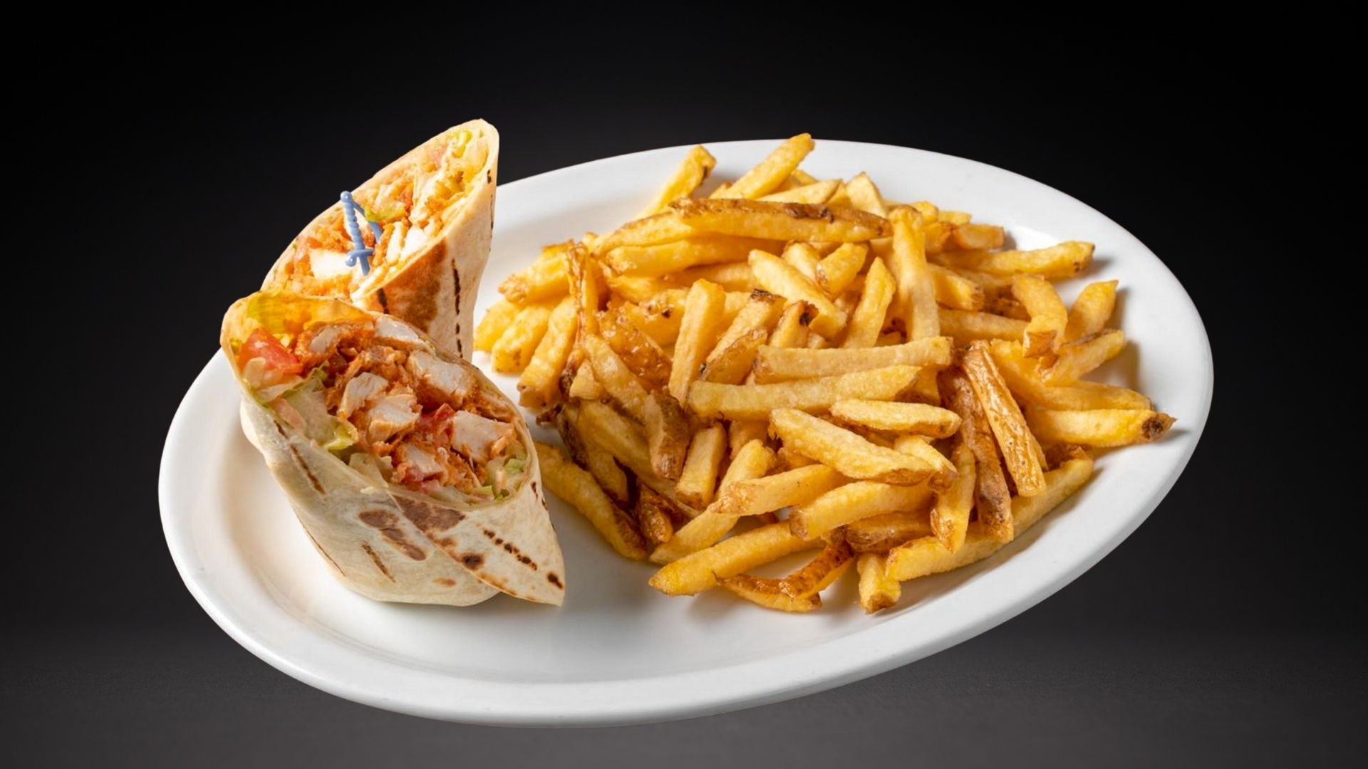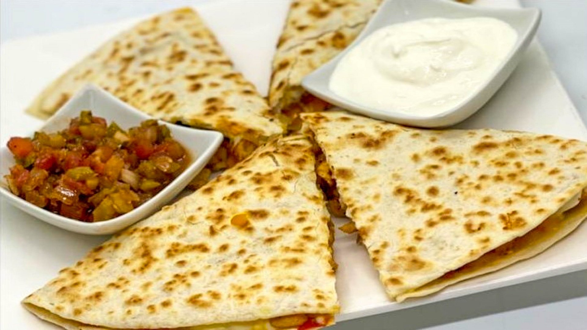 Fresh bell peppers, onions, tomatoes, chicken, and chicken stuffed inside a warm tortilla. Served with salsa and sour cream.