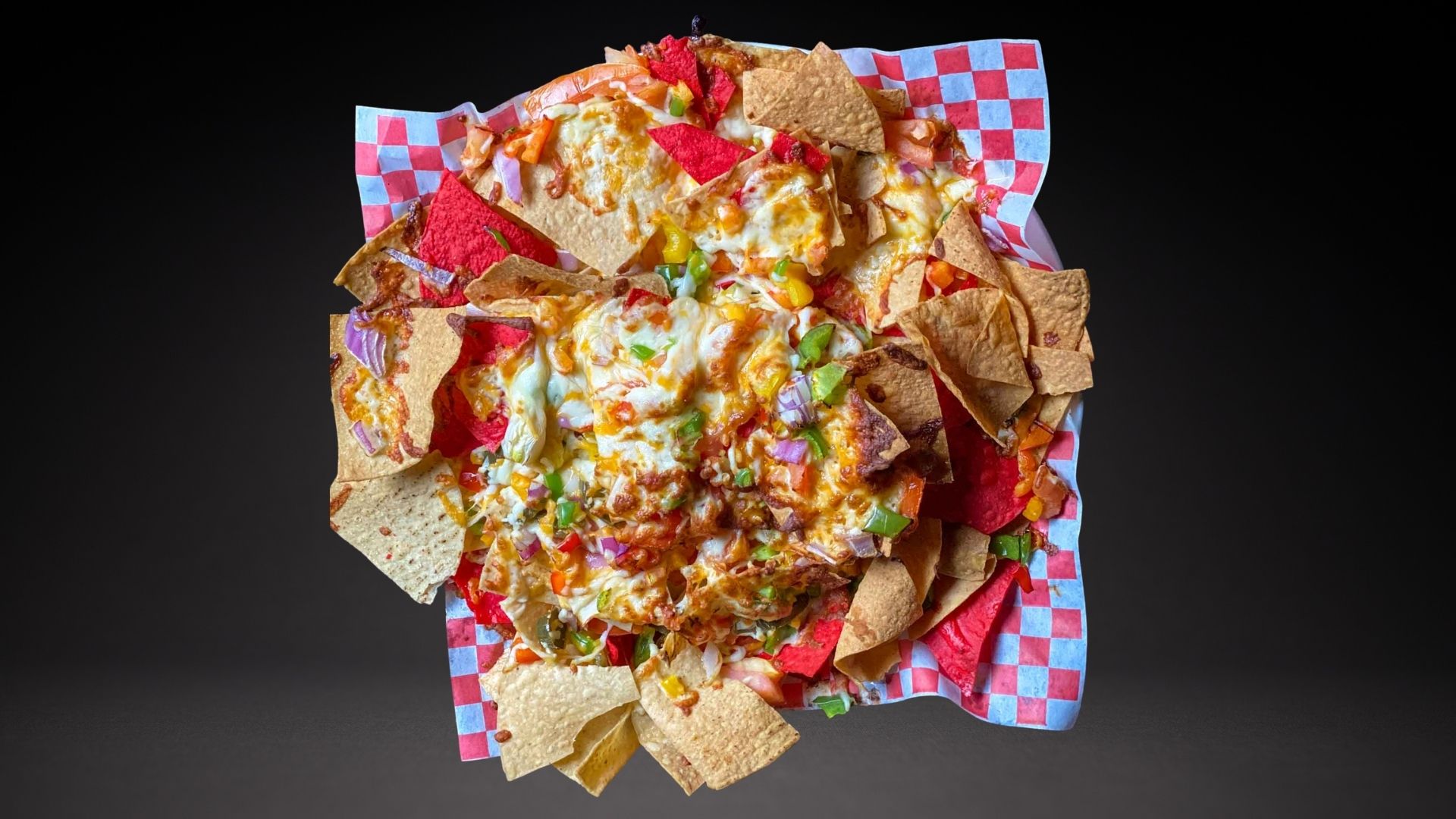 Tortilla chips layered with onion,tomato, bell pepper, jalapeno and cheese. Served with sour cream and salsa.